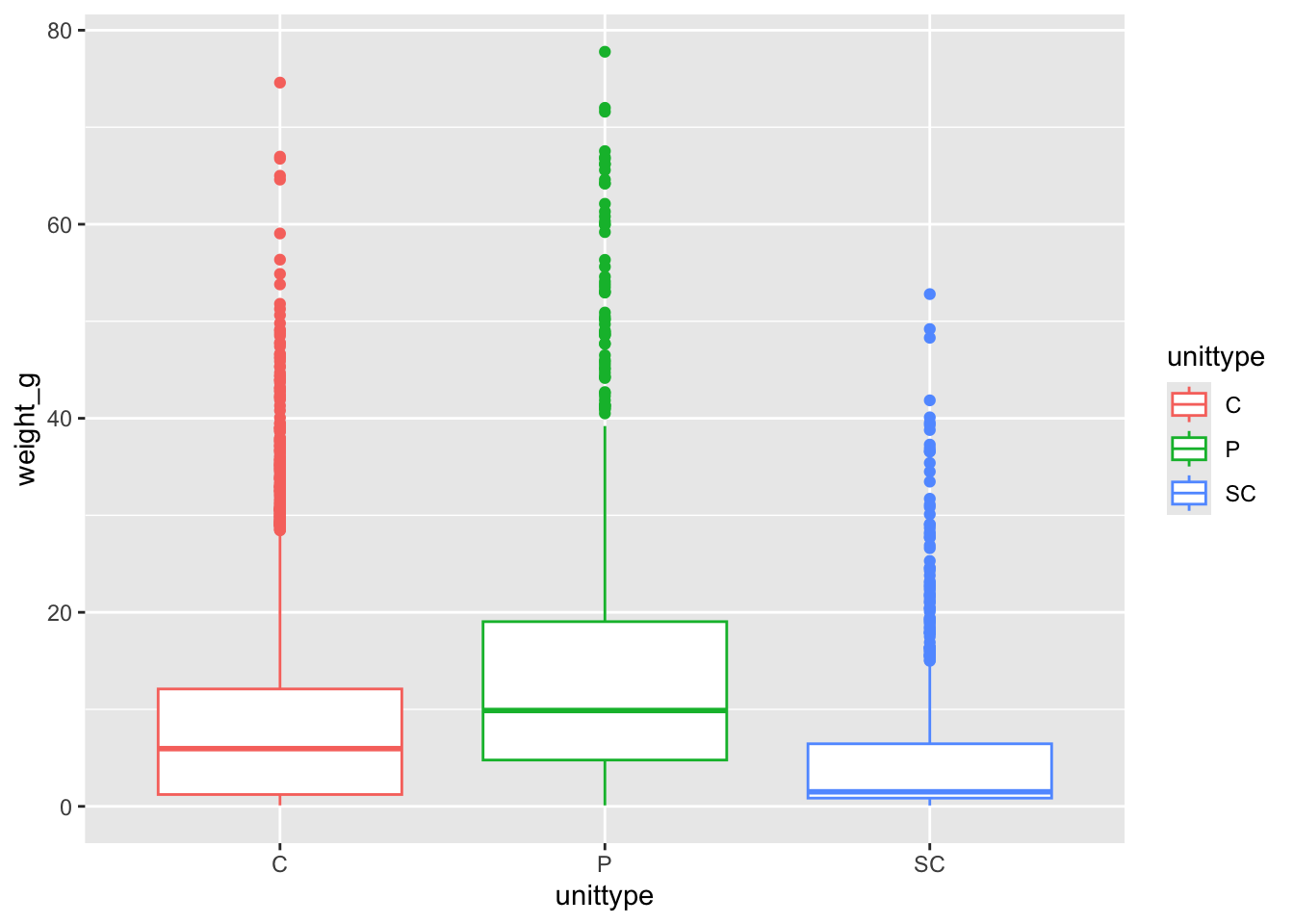 ggplot(aes(x = unittype, y = weight_g, color = unittype)) +