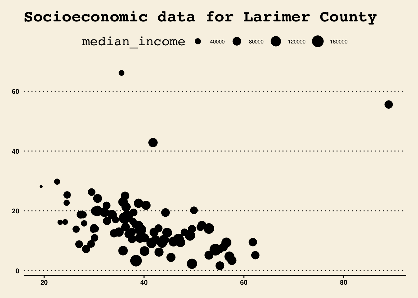 ggtitle("Census Tract socioeconomic data for Larimer County") +